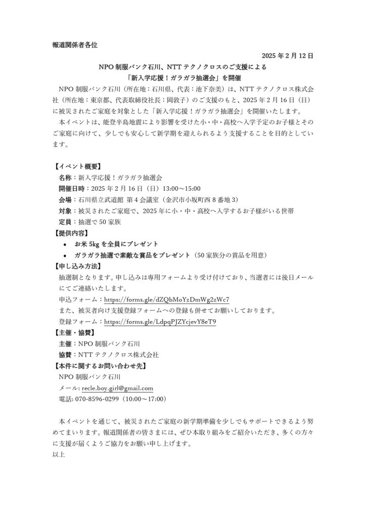 『新入学応援!ガラガラ抽選会』参加者募集!