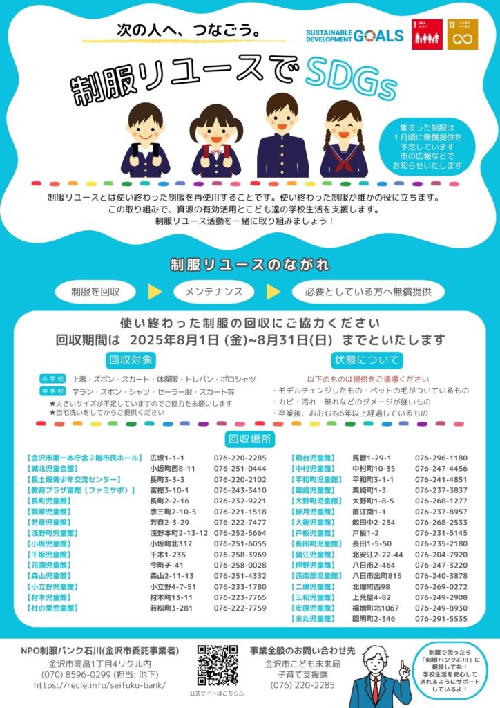 #制服リユース #金沢市 #SDGs #こども支援 #制服を未来へつなぐ
