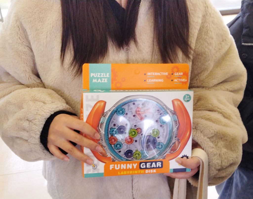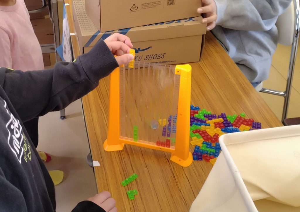 うれしそうにランドセルを抱える女の子や、お子様を説得して裁縫セットを手にしたお子様、アナログテトリスも大人気でした!