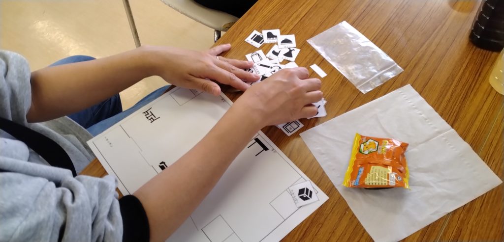お菓子と飲み物をご用意した自由なスペースで、型抜き体験コーナーやボードゲームなどを楽しんでいただきました。