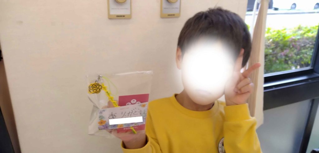 日用品セットと東京ラスクのお土産をお渡ししました。