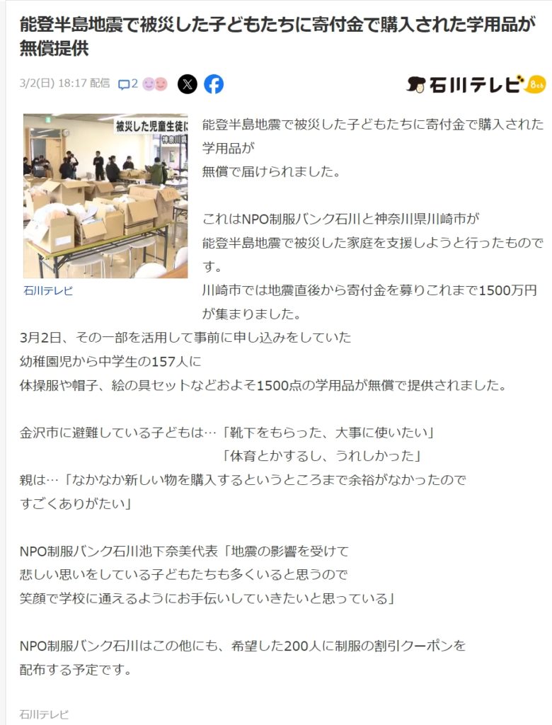📩 お問い合わせ:NPO制服バンク石川