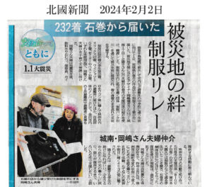 石巻市から、制服を必要とする子ども達へ、学生服の支援が届きました。 「この学生服は東日本大震災で津波の被害を経験された石巻の洋品店の榊様のご厚意によりるものです。能登地震で被災された学生のみなさんに、少しでもお役に立てれ […]